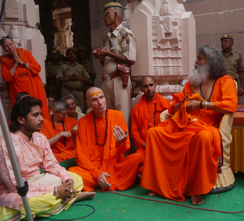 The Ashram was alive for three days with bhajans, mantras, and the pure joy of celebration. From 3am on the 22nd the ceremonies began in the yagya Shala with Sanyas Dikha, followed by Karma Sanyass Diksha and then thread ceremony for the school boys. We then went to the Bhakti Sagar for prayers in honor of Holy Guruji and Pada puja to Swamiji, all our international friends visitors and Karma Yogis then greeted Swamiji and while it then felt like midday, it was only 8am. Like this the day continued full of events, satsang and singing. The atmosphere was of happiness and gratitude.