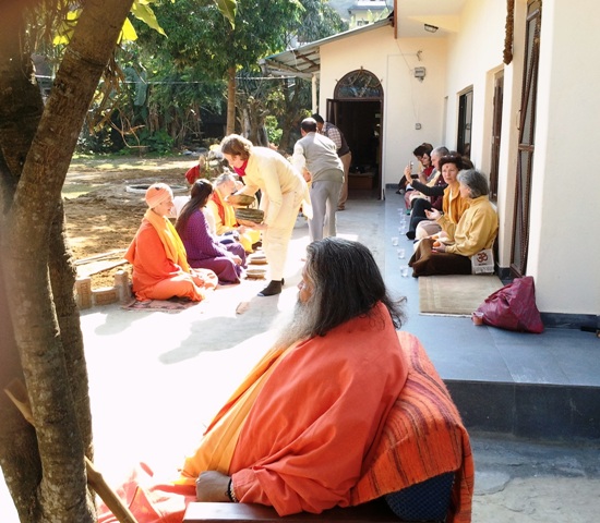 The time we have had with Swamiji in Nepal was so much filled with his Love, Light and Wisdom. After the morning sadhana most of the days we were enjoying with Swamiji on the warm Sun on his terrace. Following we were going either for walks, visits, bandharas, performing karma yoga in the ashram, or taking the trips to the temples, villages or view-points to the beautiful Nepali Himalayas, valleys, lakes. As more and more local people and their children were also joining the Swamiji's satsangs, our evenings were becoming a true joint celebration of singing bhajans, mantras, prayers, dancing and meeting of all kinds of people of good will. During his stay in Pokhara Swamiji has touched the hearts of so many local people, especially children, who have touched all of us with their sincerity, love and affection to Swamiji. So perhaps Swamiji might return sometime.