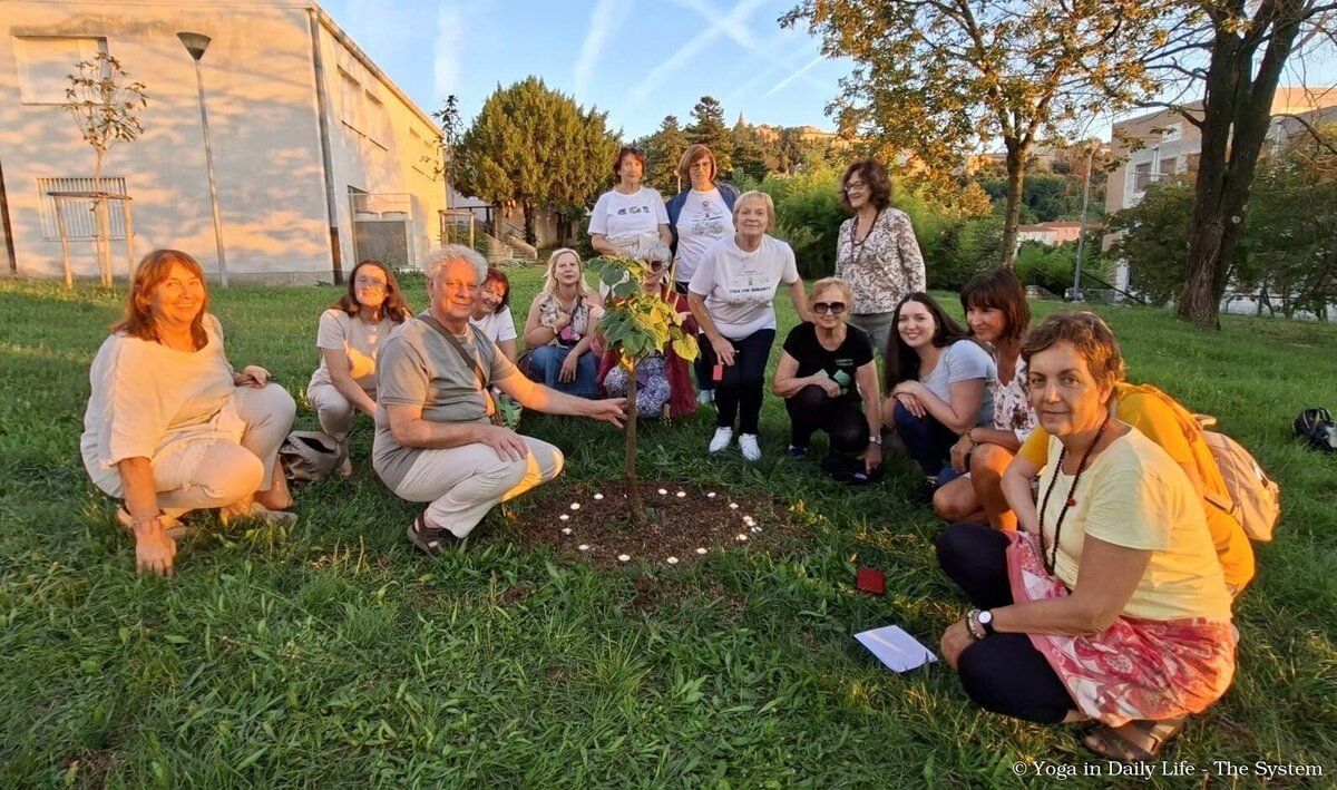Yoga practitioners and devotees gathered at the World Peace Trees around the world, planted by the founder of the Yoga in Daily Life System, Vishwaguru Mahamandaleshwar Paramhans Sri Swami Maheshwarananda Puri Ji - Vishwaguruji.