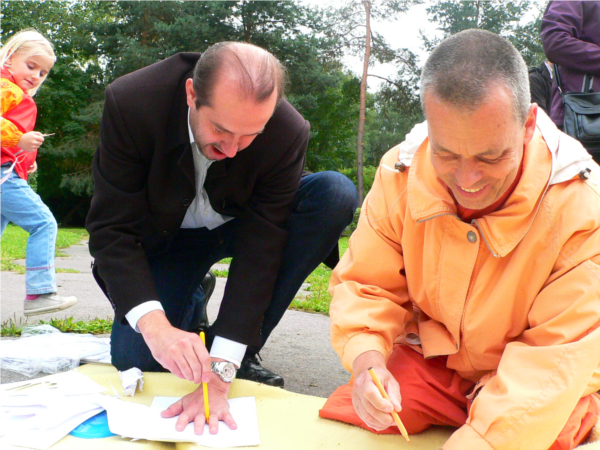 We also heard wise words from our guests Swami Gajanandji and the Town Mayor Ing. Martin Malý, who you can see drawing their hands for peace in the photos below. The event was sponsored by the Town of Prachatice, for which we are very thankful.