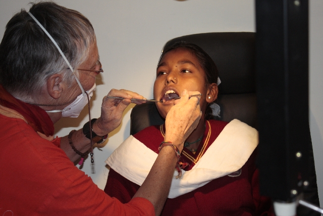 At the beginning a ceremony was done at 9h and at 12h the first patient miss Santosha, 12a old, had teeth examination. We opened the dental department and Santosha is a student of the Jadan school. We will examine now all 1200 schoolchildren to check their health condition.