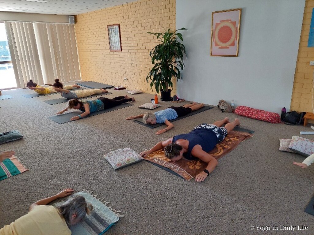 After the formal part of the evening, Swami Umapuri invited anyone who was interested in yoga and particularly anyone with special health concerns, such as neck, back, hip problems etc., to attend a special yoga session the following evening, again in the Yoga in Daily Life Studio. It was a very generous offer, and many came, including people who had not tried Yoga before. Everyone enjoyed the class and the Gold Coast now welcomes some new regular yoga students as a result.
