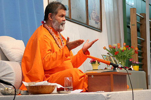 The theme of the lecture was "Kundalini and Svadhisthan Chakra" and Swamiji began with explaining Creation itself, the expansion of consciousness and the manifestation of the material universe. That same Divine Consciousness that was once one, is now multiplied into countless units – a multitude of living beings. These may differ in their appearance and abilities, yet all contain the same reflection of the Divine. From all of creation, humans are the most developed, possessing a mighty intellect and the potential to merge our individual consciousness again into the Divine. Stages through which an individual consciousness must pass in its ascent are called Chakras. Each of these energy centres has its own set of qualities and feelings, some positive and some negative. To overcome the negative and to awaken the positive qualities is what we term as the process of spiritual development.