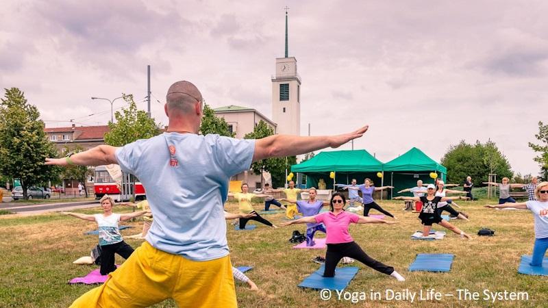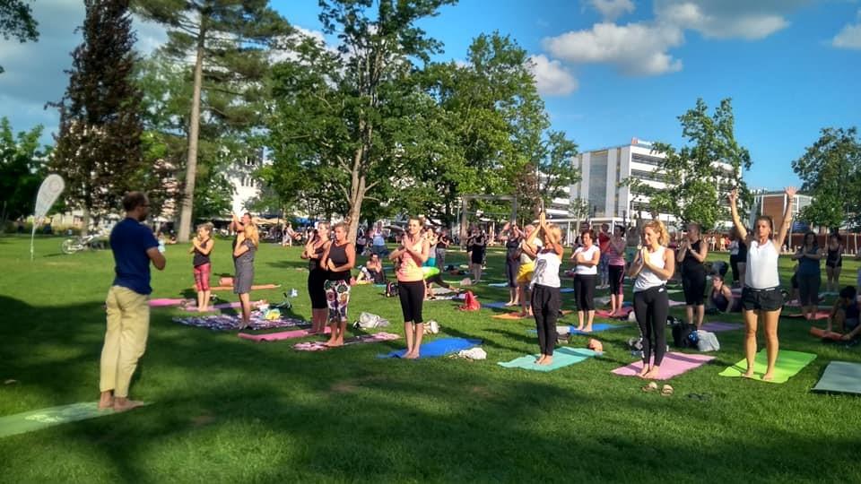 In Banská Bystrica we celebrated International Yoga Day on June 23, in the park under the SNP Memorial. Three sessions of exercises were prepared: for beginners, for children, and asanas with pranayama. The yoga classes were part of the Slovakia Sporting event, with participants particularly interested in yoga exercises. 70 people joined in with the yoga practice during the morning.