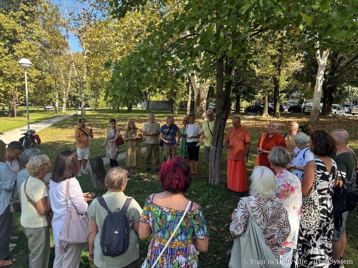 Karma Yoga is the path of selfless action and service, distinct from ordinary work by the intention that guides it, calling upon the practitioner to dedicate all efforts to the Divine – acting with detachment from outcomes.